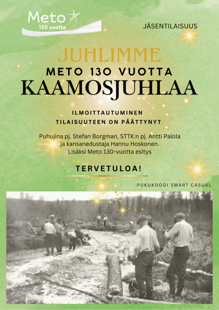 Tilaisuus Meton jäsenille Helsingissä keskiviikkona 22.10.2025 klo 17-19.