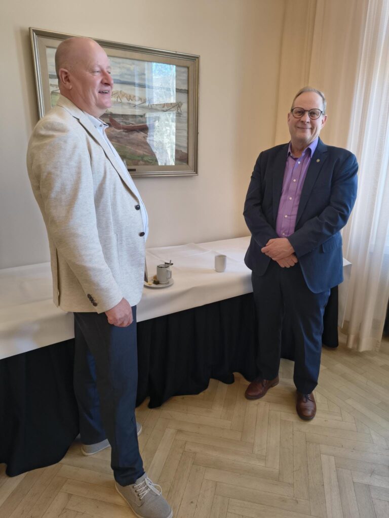 Yrittäjäyhdistyksen varapuheenjohtaja Raimo Asikainen ja METO – Metsäalan Asiantuntijat ry:n puheenjohtaja Stefan Borgman.