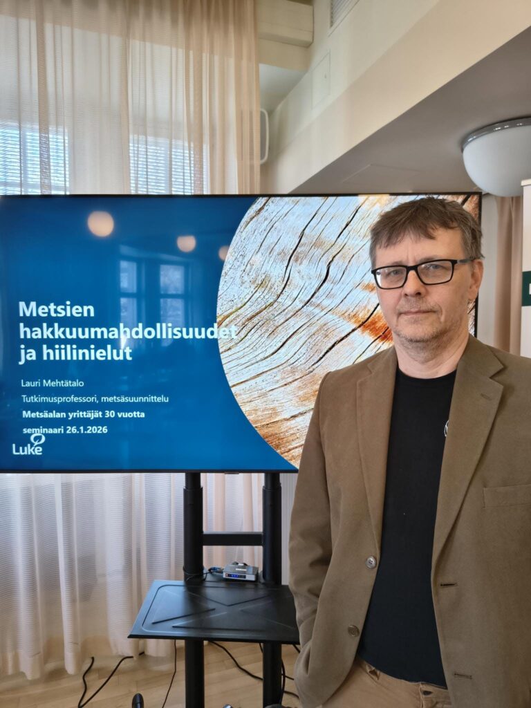 Luonnonvarakeskuksen tutkimusprofessori Lauri Mehtätalon esitys ”Metsien hakkuumahdollisuudet ja hiilinielut” sai aikaan hyvää keskustelua aiheesta.